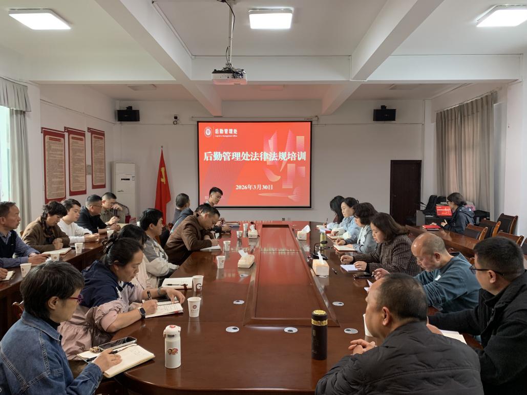(文、图/胡悦)为进一步提升后勤服务管理水平,强化全员法治意识,规范用工管理及安全生产工作,后勤管理处于2026年3月30日在东校区文泽楼会议室组织开展了法律法规专题培训会。培训由人事科、饮食服务中心、交通运营中心三方联合主讲,相关部门工作人员参加学习,罗旋副处长作总结讲话。